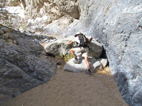 We had planned to end at where the book described as a ‘large boulder blocking the wash which can be easily bypassed by taking the rock steps on the left.’ We saw this,